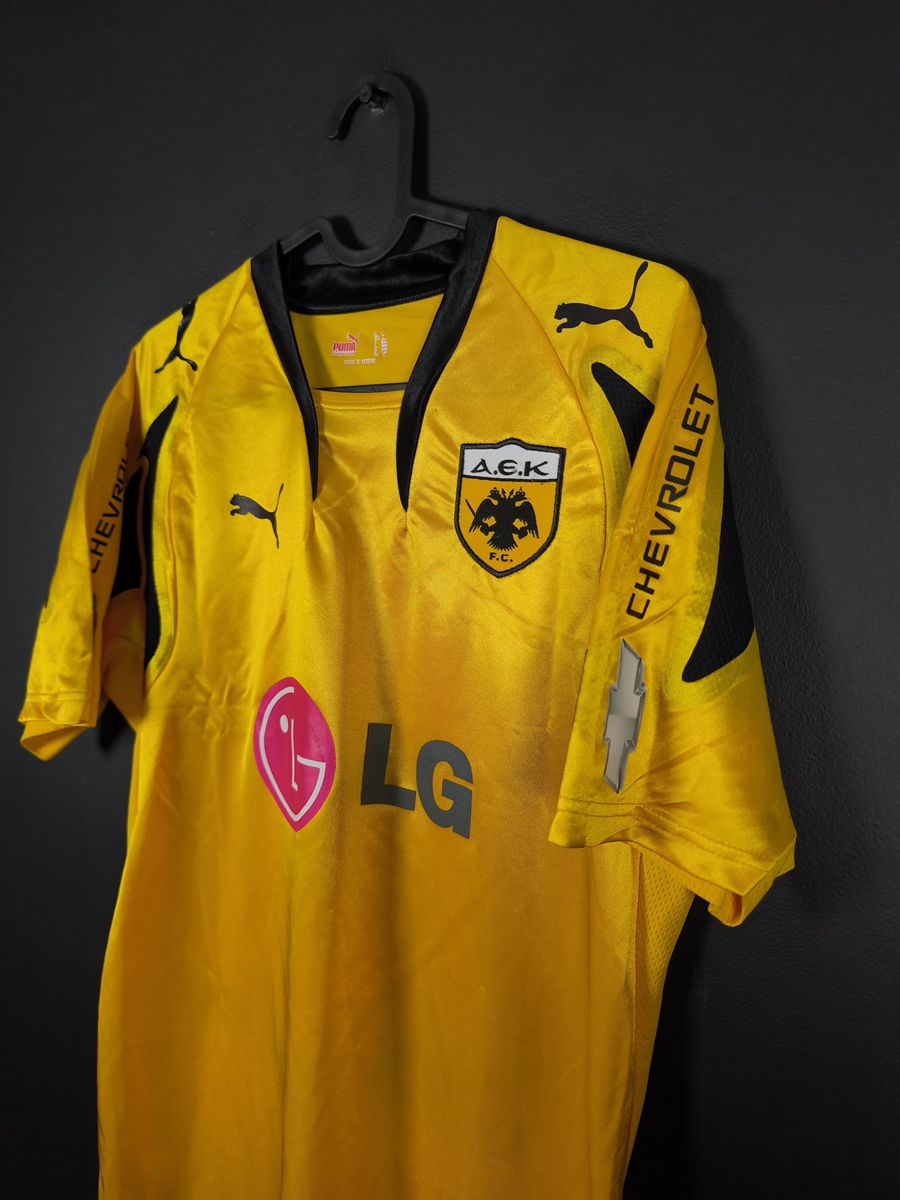 Oryginalna, domowa koszulka piłkarska greckiego AEK Ateny, z sezonu 2007/08.