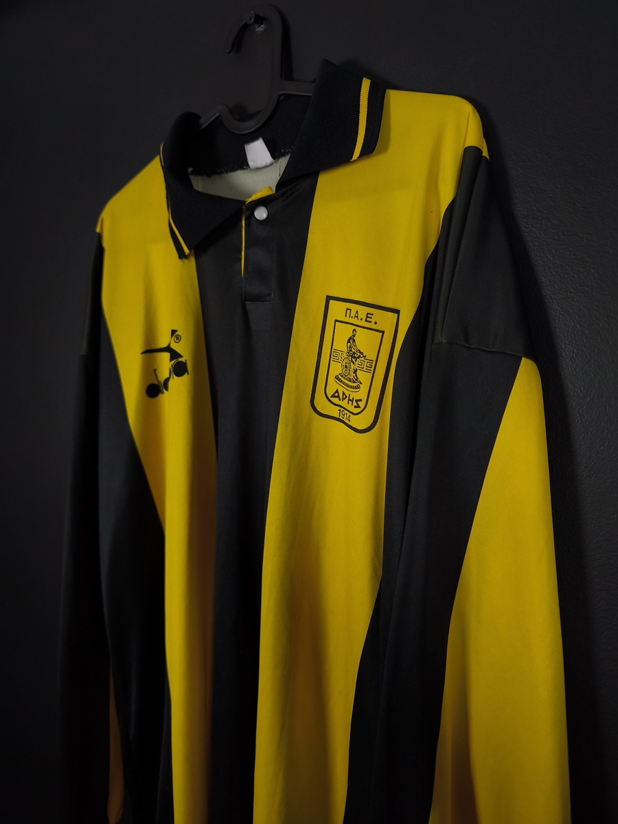 Oryginalna, domowa koszulka piłkarska greckiego Aris Saloniki, z sezonu 1994/95.