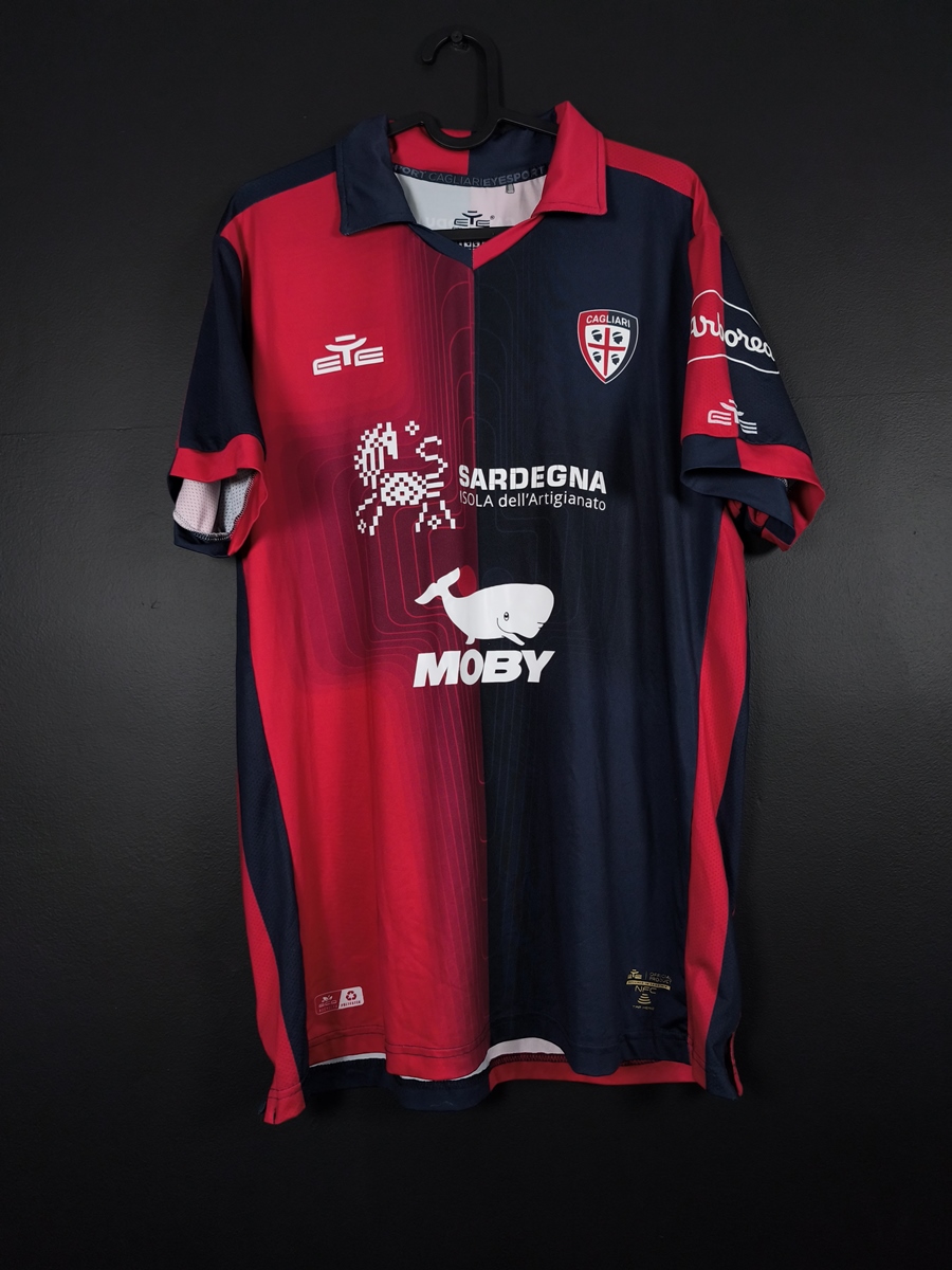 Oryginalna, domowa koszulka piłkarska włoskiego Cagliari, z sezonu 2023/24.