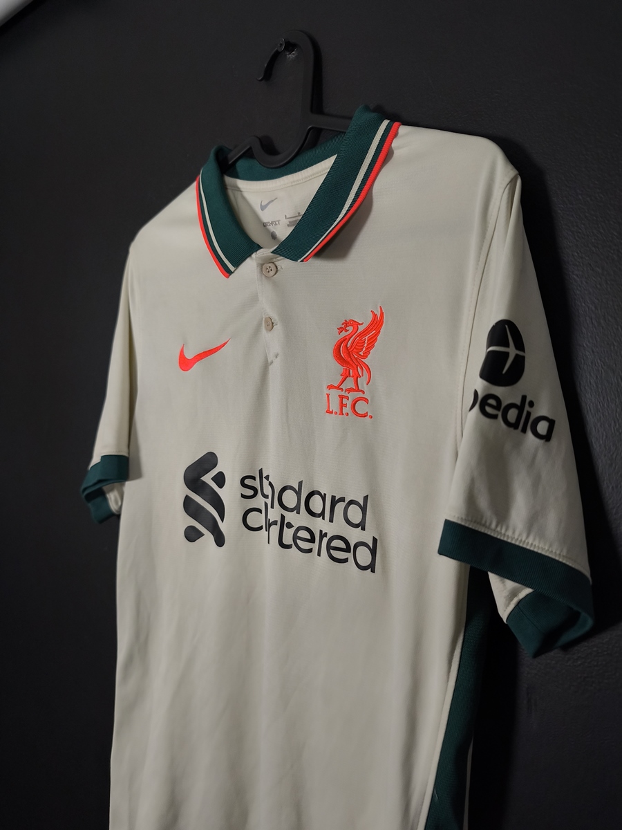 Oryginalna, wyjazdowa koszulka piłkarska Liverpool, z sezonu 2021/22.