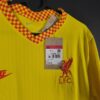 Najciekawszym elementem są kołnierzyk oraz mankiety rękawów wykończone w czerwono-żółtą szachownicę, które oddają hołd dla flag i transparentów kibiców z trybuny The Kop.
