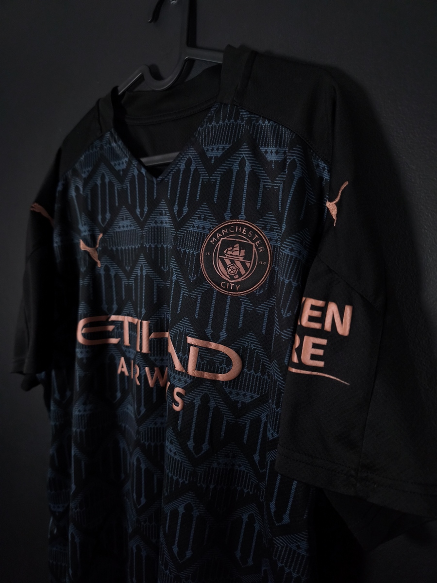 Oryginalna, wyjazdowa koszulka piłkarska Manchester City, z sezonu 2020/21.