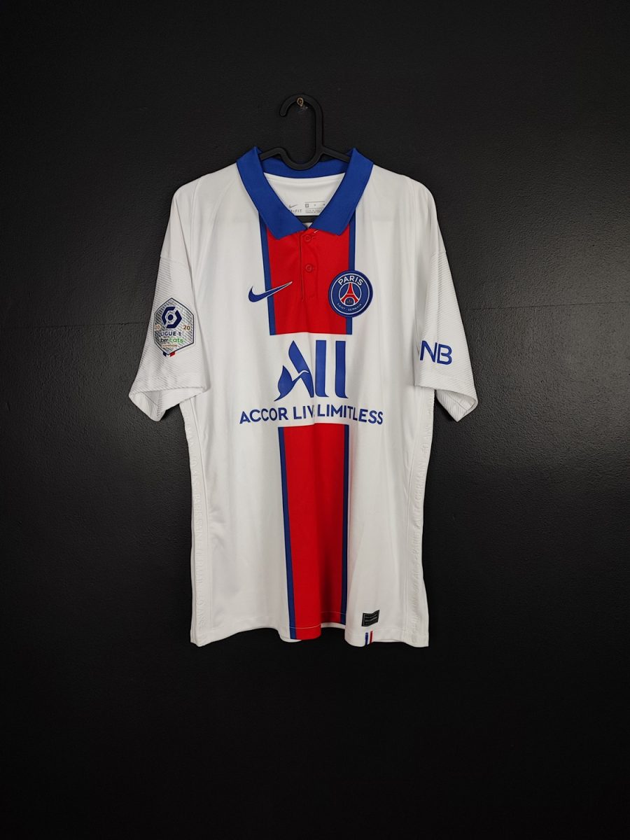 Oryginalna, wyjazdowa koszulka francuskiego PSG, z sezonu 2020/21.