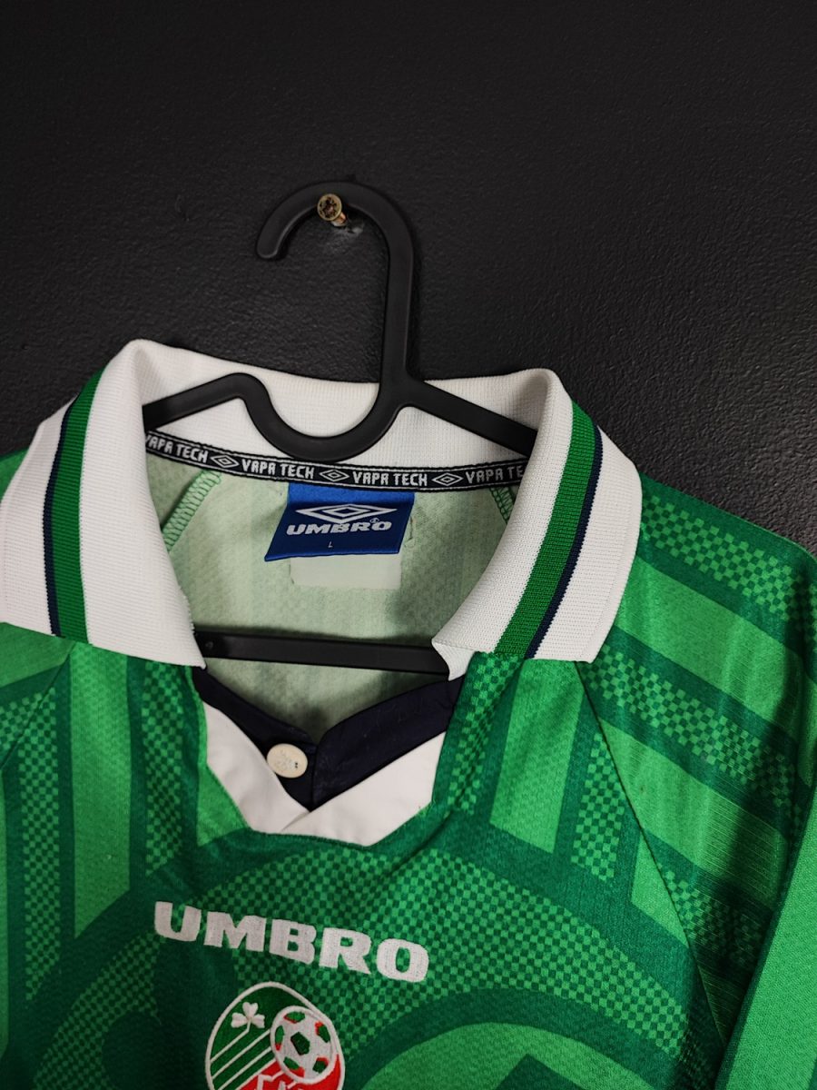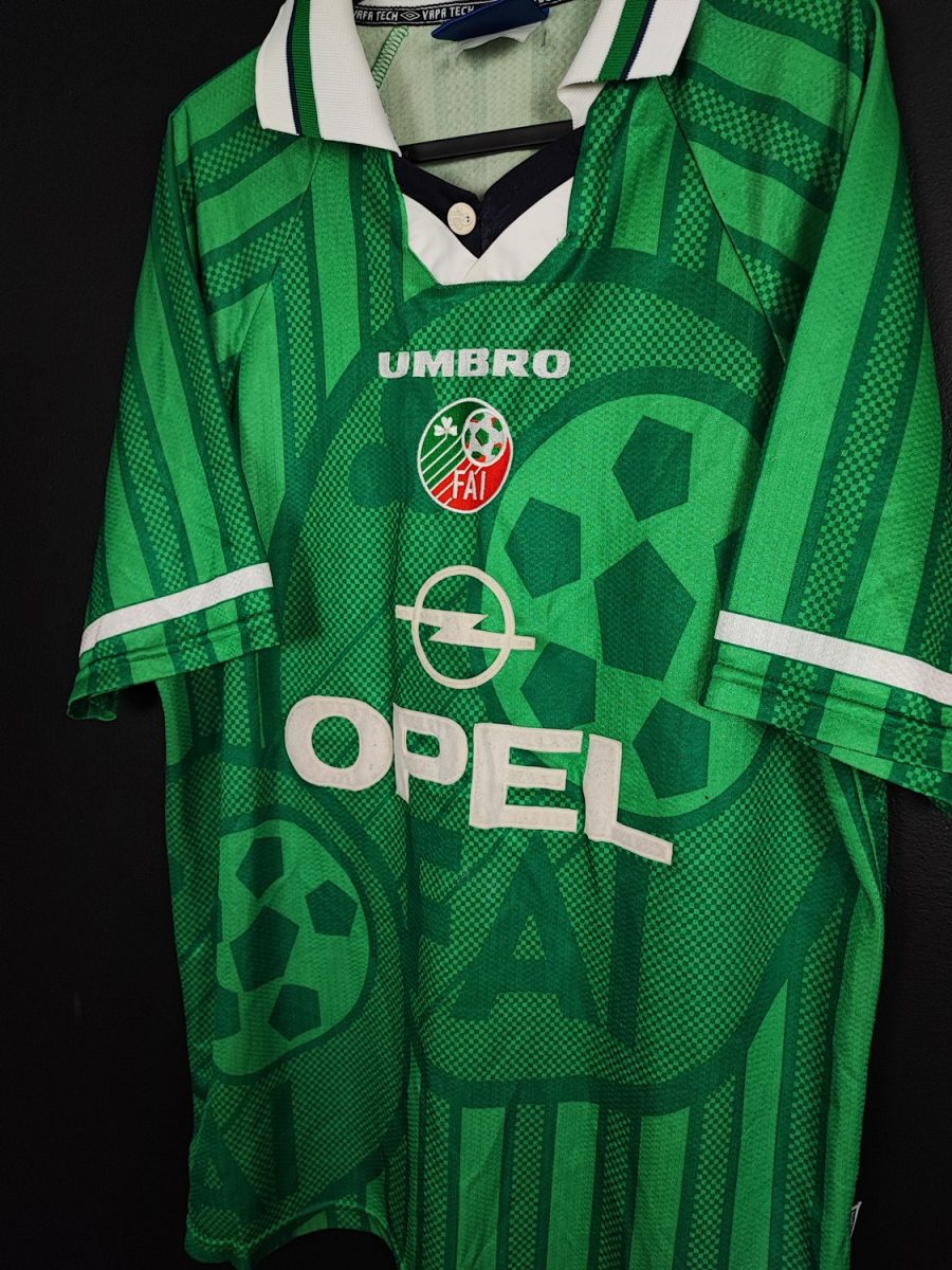 Oryginalna, domowa koszulka reprezentacji Irlandii, z lat 1998/99. Gratka dla kolekcjonerów.