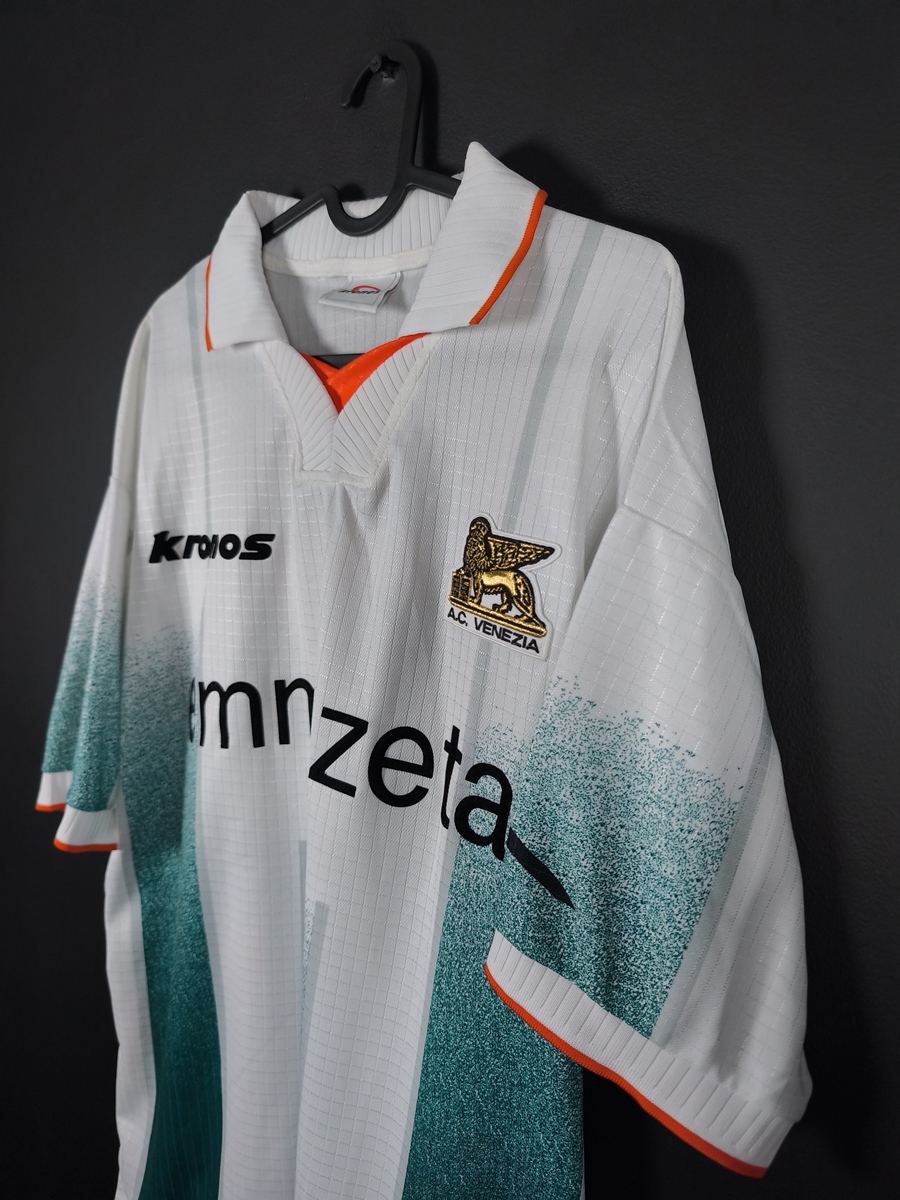 Marka Kronos to rzadkość. Włoska firma dostarczała stroje dla Venezii tylko przez krótki czas (1998–2000), co sprawia, że te modele są znacznie trudniejsze do zdobycia niż późniejsze projekty Kappa czy Nike.